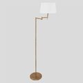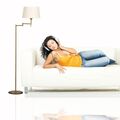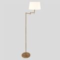 Oplev den bronzefarvede gulvlampe. Denne gulvlampe leveres med en skærm i cremefarvet linned. Den drejelige arm sikrer, at lampen giver lys præcist, hvor det ønskes. Gulvlampen betjenes via en tænd/sluk-knap i form af en træksnor. Lampen har en E27 (stor) fatning og er egnet til lyskilder op til maksimalt 40 watt.