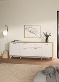 De bløde trætoner sammen med de hvide flader giver et roligt, skandinavisk look, der passer perfekt ind i både stue, spisestue og opholdsrum. Alle moduler er udstyret med gode opbevaringsløsninger og justerbare hylder, så du nemt kan tilpasse dem efter behov.