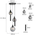 Opgrader dit interiør med den sorte pendellampe. Denne pendellampe med tre glasbuer i forskellige størrelser (20, 25 og 30 cm) og to rør med GU10-fatninger tilføjer stilfuld belysning til ethvert rum. Rørene indeholder lyskilder på 4,9W, dæmpbare fra 2200 til 2700 Kelvin, med et maksimalt lysudbytte på 480 lumen.