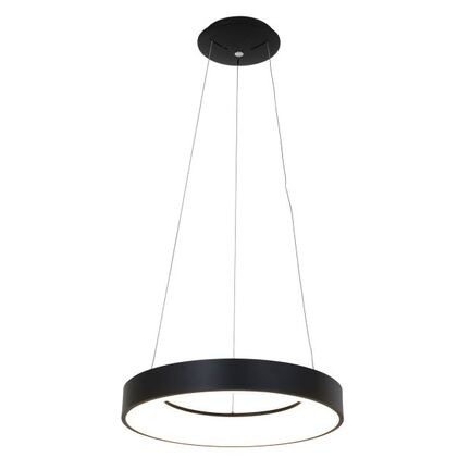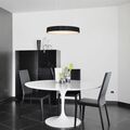 Lampen er udstyret med en dæmpbar driver, hvilket gør det muligt at dæmpe lyset nemt med en væg-dimmer (medfølger ikke). Lampens højde kan justeres under installationen, fra 15 centimeter til en maksimal højde på 160 centimeter. Lysringen hænger elegant fra tre kabler og har en generøs diameter på 48 centimeter med en højde på 6 centimeter.