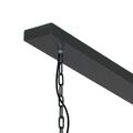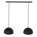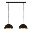 Oplev den robuste sorte pendellampe. Med en total bredde på 120 centimeter er denne lampe et markant tilføjelse til ethvert rum. Skærmene har en diameter på 35 cm og er udstyret med en stor fatning (E27). Indvendigt er de afsluttet med et gyldent folie for et varmt udseende. Under installationen kan lampen justeres i højden op til maksimalt 160 centimeter ved at forkorte den sorte kæde eller drapere den.