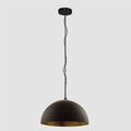 Oplev den imponerende store pendellampe. Med en imponerende diameter på 50 centimeter er denne lampe et robust tilføjelse til dit interiør. Udstyret med en stor fatning (E27) og afsluttet med et gyldent folie på indersiden for et varmt udseende. Under installationen kan lampen justeres i højden op til maksimalt 160 centimeter ved at forkorte den sorte kæde eller drapere den. Dæmpbar: Ja, ved hjælp af en ekstern dæmper (medfølger ikke) og en passende lyskilde.