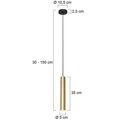 Oplev den stilfulde pendellampe. En messingfarvet cylinder på en sort jerngardin. Cylinderen er udstyret med en GU10-fatning, og lampen er højdenjusterbar mellem 30 og 150 cm. Lyskilden er dæmpbar mellem varme farvetemperaturer på 2200 til 2700 Kelvin og giver maksimalt 480 lumen lys. Dæmpbar via en ekstern dæmper (medfølger ikke).