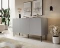 Opgrader stuen med denne elegante møbelserie, der kombinerer laminat i lys grå med smukke lamel-låger i MDF og sorte metalben. Serien skaber et moderne og stilrent udtryk, hvor rene linjer møder funktionalitet og robust design.