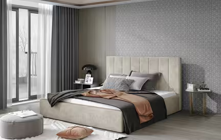 Det høje, polstrede hovedgærde med blød finish giver både et eksklusivt udtryk og behagelig støtte, når du ønsker at slappe af i sengen i løbet af dagen.