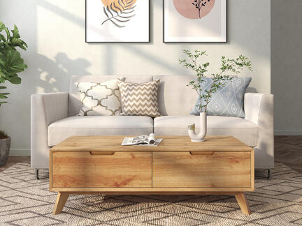 Sofabord i egetræslook med 2 skuffer
