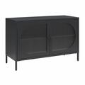 Giv dit hjem et stilrent udtryk med dette elegante vitrineskab i en flot sort farve. De ovale, rillet glasdøre tilfører et diskret vintage-præg, som gør skabet til et dekorativt element i sig selv.