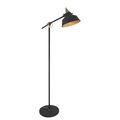 Oplev denne moderne gulvlampe serie. Lavet af metal med en sort belægning og en skærm med en gyldenvædet indvendig. Skærmen har en diameter på 22 centimeter, og takket være den gyldne indvendige farve, giver den et ekstra varmt lys. Armens højde på gulvlampen kan justeres op til 172 centimeter.
