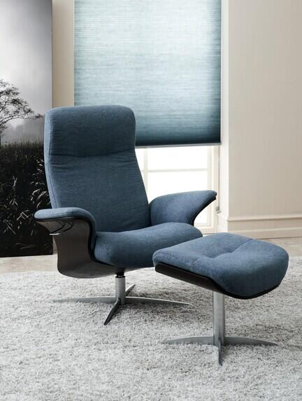 Recliner med fodskammel – eksklusivt læder/Stof og fleksible trævalg