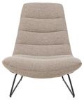 Denne lounge stol kombinerer komfort og elegant design med et robust slædestel i mat sort ru pulverlakeret stål. Stolen er betrukket med Monza stof i en varm beige nuance, der giver et lyst og indbydende udtryk til stuen, læsehjørnet eller kontoret.