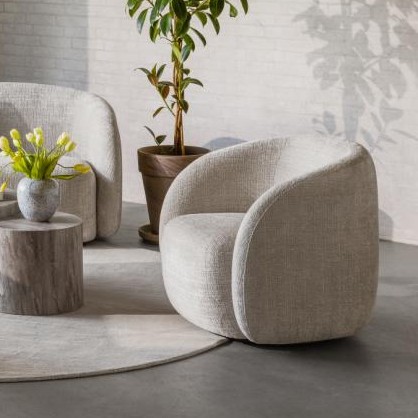 Lounge stol med armlæn i beige stof og drejefunktion