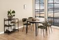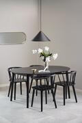 Elegant og funktionelt rundt spisebord i moderne design. Bordpladen er udført i egefiner med mat sort acryl lak, som giver et eksklusivt og roligt udtryk. Stellet er i matchende finish, som skaber et harmonisk og sofistikeret helhedsindtryk.