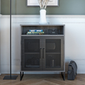Dette funktionelle skab er udført i grå egetrælook med en holdbar pulverlakeret metalramme, som giver møblet et moderne og stilfuldt udtryk. Den robuste konstruktion kombinerer metal og trælook for et dekorativt og solidt møbel.
