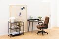 Denne skrivebordsstol har et rummeligt og ergonomisk design, der egner sig særligt godt til længere arbejdsdage ved skrivebordet. Stolen er polstret i camelfarvet stof, som giver et varmt og eksklusivt udtryk og passer flot ind i både hjemmekontor og moderne kontormiljøer.