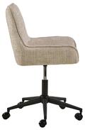 Denne skrivebordsstol har et moderne og let udtryk, der passer godt ind i både hjemmekontor og professionelle arbejdsmiljøer. Stolen er polstret i beige stof og giver en behagelig siddekomfort, velegnet til dagligt arbejde ved skrivebordet.