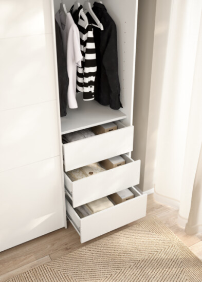 • 1 pakke med 3 stk. Skuffer og tophylde til garderobeskab