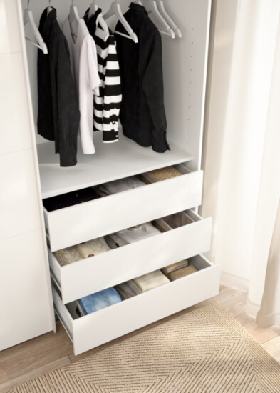 1 pakke med 3 stk. Skuffer og tophylde til garderobeskab