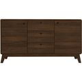 - Skænk med 3 skuffer og 2 låger i Valnød look, giv dit hjem et moderne og stilrent udtryk med denne skænk. Den kombinerer det varme Valnøds look med en flot finish, hvilket passer perfekt ind i både klassiske og moderne indretninger.