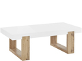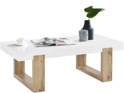 Sofabord med hvid topplade og ben i egetræslook