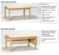 Sofabord massiv bøgetræ med klap & Ristehylde