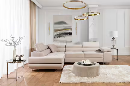 Denne hjørnesofa er både funktionel og rummelig, og den er lavet i et moderne design. Den er synonym med høj kvalitet og maksimal komfort, takket være et bredt sæde med en dybde på 56 cm.