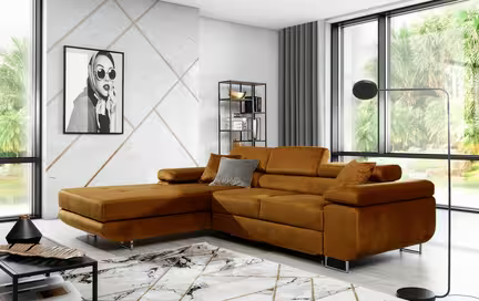 Chaiselongsofaen har et rummeligt sæde (289 x 203 x 85 cm), som giver både komfort og elasticitet. Den L-formede enhed er udstyret med en sovefunktion, der strækker sig over 123 x 210 cm, samt et praktisk opbevaringsrum til sengetøj.