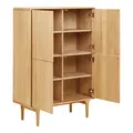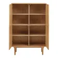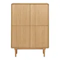 Den naturlige farve fremhæver træets struktur og varme glød, og skabet byder på god, skjult opbevaringsplads til service, glas, bøger eller andre hverdagsgenstande.